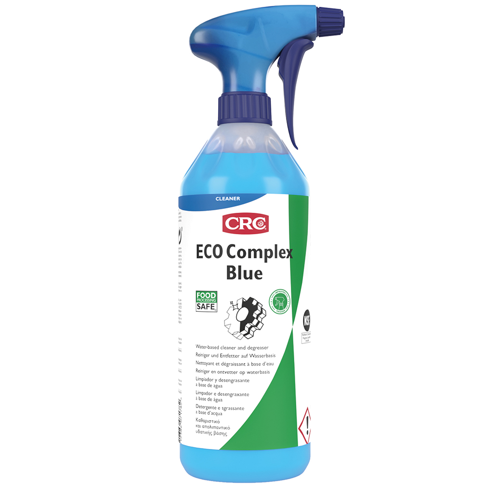 CRC ECO Complex Blue on syttymätön, vesipohjainen puhdistusaine vaikeasti irtoavan lian puhdistamiseen. ECO Complex Blue on Food Safe -tuote (NSF A1 -rekisteröity), eli sitä voidaan käyttää puhdistamiseen myös elintarvikkeiden käsittelyalueilla, kuten ammattikeittiössä tai ruoan valmistusteollisuudessa sekä kotona tai mökillä esimerkiksi keittiössä tai kesäkeittiössä. Kätevä 1l sumutinpullo on heti käyttövalmis.