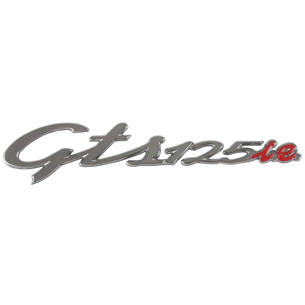 Taakse oikealle sivulle tuleva Gts125ie-merkki, jonka koko 130x28mm.