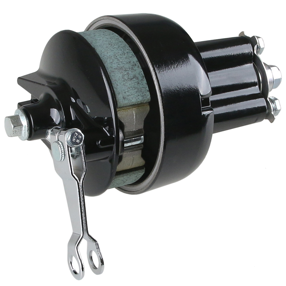 Sisältää: 12mm akselin, navan holkin, takarattaan kiinnityspultit sekä lukkolevyn. Navassa valmiiksi asennettu laakerit ja stefa. Jarrukilvessä valmiina myös jarrukengät, levittäjä ja levittäjänvipu.