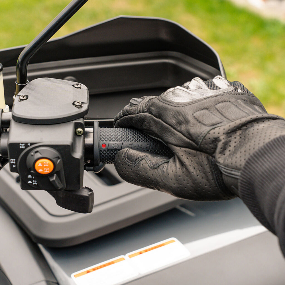 SHARKin lämmitettävät Lock-On-kahvat integroidulla säätimellä ja peukalonlämmittimellä tarjoavat huippuluokan mukavuutta kylmissä olosuhteissa. Ohjausyksikkö on sisäänrakennettu kahvoihin, joten erillistä säädintä ei tarvita – ohjaustanko pysyy siistinä. Järjestelmään voi liittää yhteensä neljä lämmitettävää laitetta.