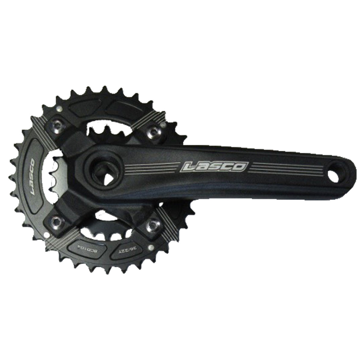 Lascon laadukas kampipari.- Rataskoot: 36/22 hammasta- Materiaali: Alumiini- Kammen pituus: 170mm- Keskiö: Nelikantti- Sopivuus: Suositus 110,5 mm akselille/kasettikeskiölle- Syvyys/Offset 2,2mm- Solveltuvuus: 9- ja 10-lehtiselle rataspakalle- Väri: Musta