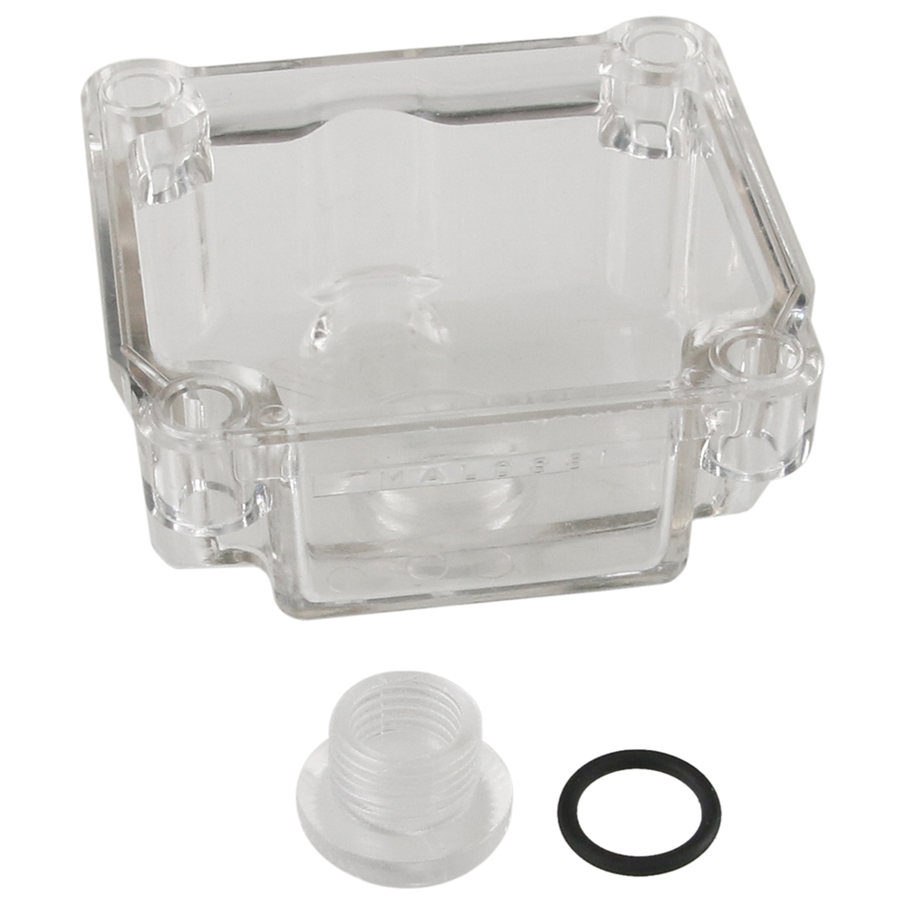 Läpinäkyvä kohokammio PHBG 15-21mm kaasuttimiin. Pohjaruuvi nopeuttaa ja helpottaa suuttimien vaihtamista ja kaasuttimen säätämistä.