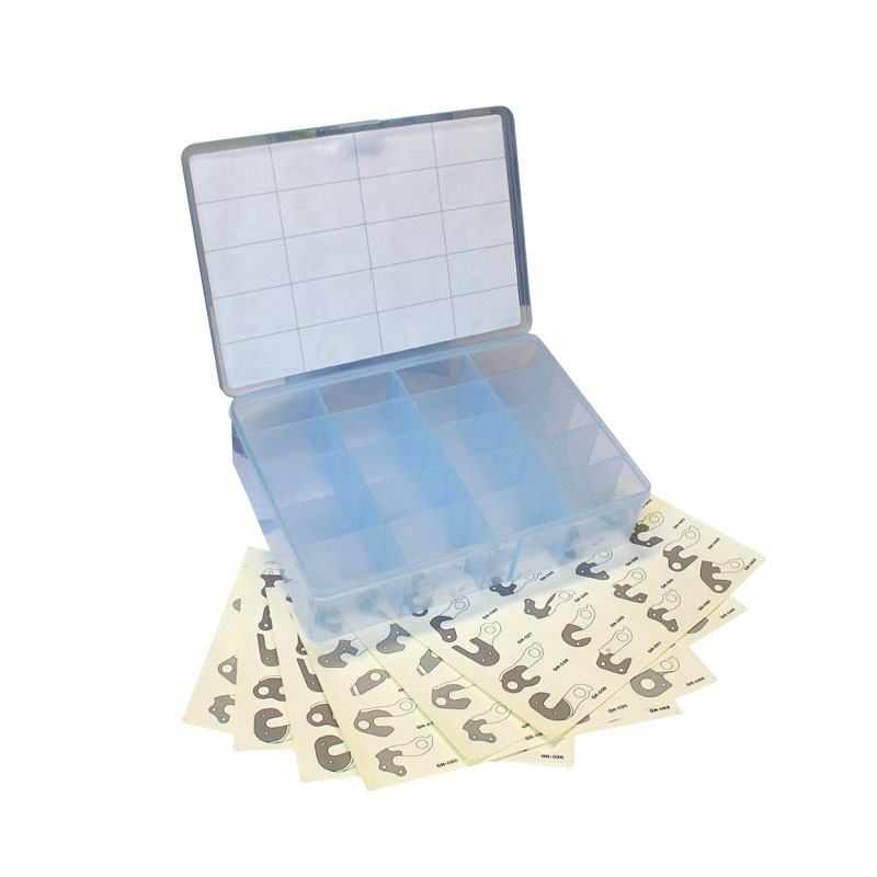 Marwin korvakkeille tarkoitettu tyhjä laatikko, jossa 20 paikkaa eri korvakkeille. Sisältää tarra-arkit Marwi korvakkeille.