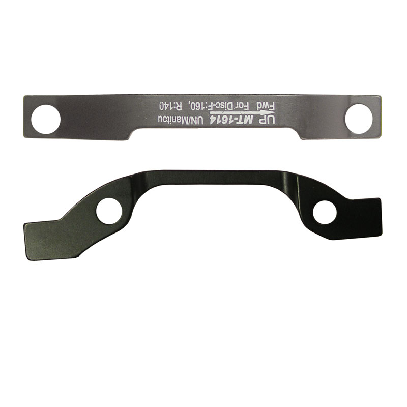 Haarukkaan kiinnitettävä adapteri levyjarrusatulan kiinnitystä varten.Muuntaa kiinnityksen levyjarrun satulalle sopivaksi. – Edessä 160mm levylle- Takana 140mm levylle