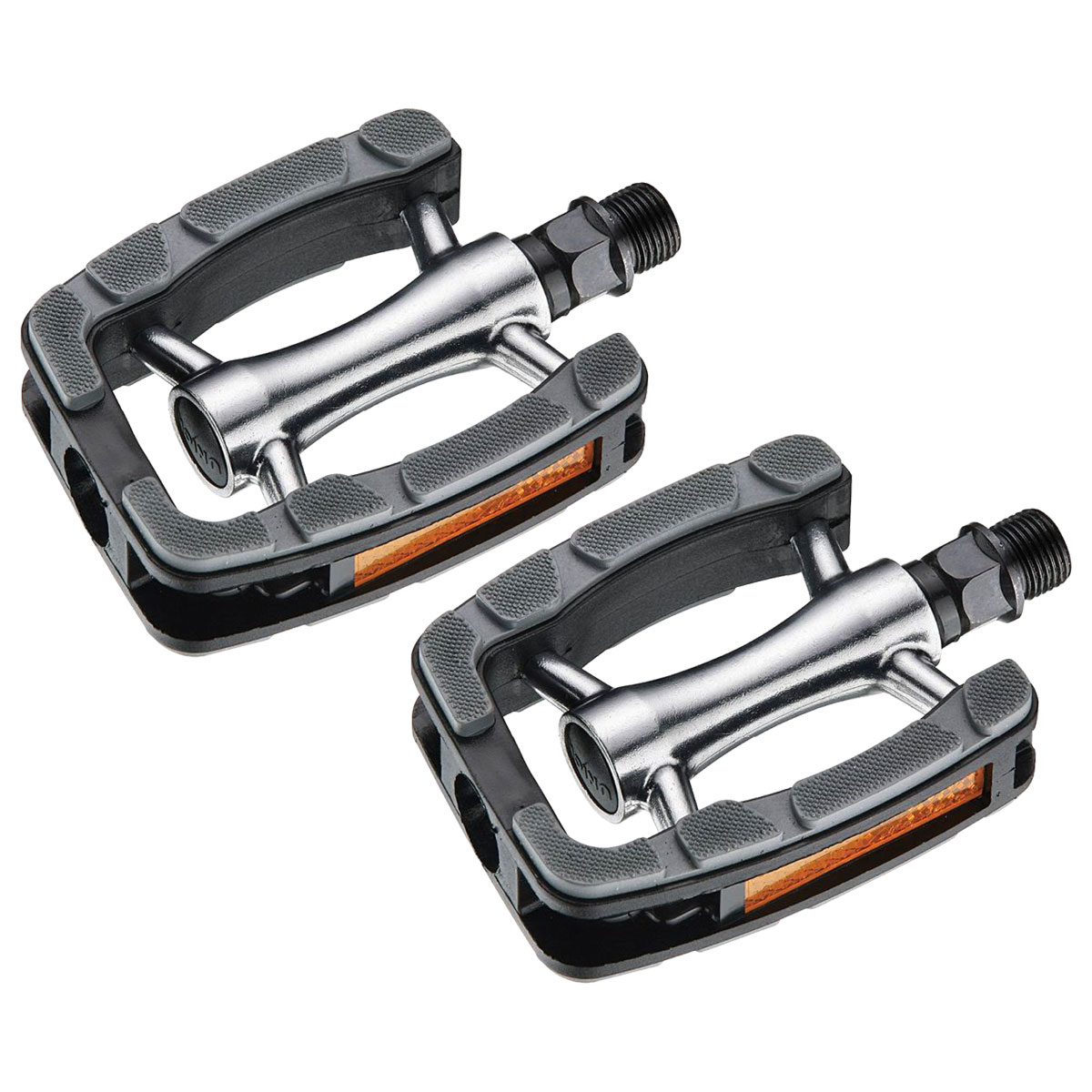 Nykyaikaiset vakiopyörän polkimet.- Alumiinirunko- Kierre 9/16″- Muovinen ulkokehä- Kuminen liukueste- Paino: 291g/pr- Mitat: 103 x 78 mmMyyntierä 1 pariLaatikossa 6 paria