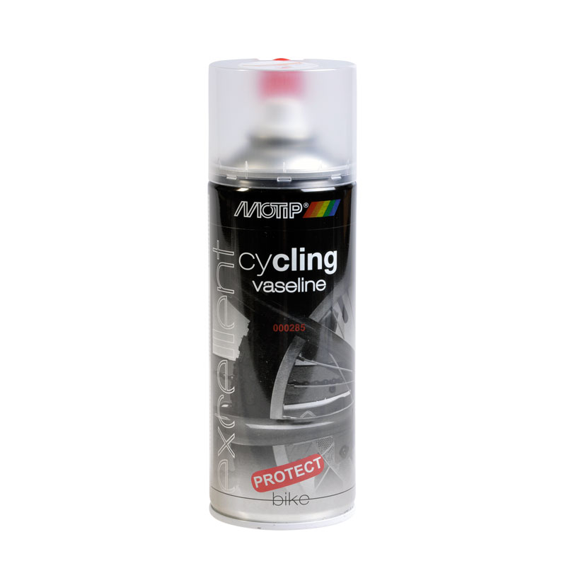 Motip Cycling Vaseline Spray (400ml)Erittäin hyvin vettä ja kosteutta hylkivä ruiskutettava vaseliini.Kestää sään, heikkojen happojen sekä emäksien vaikutusta.Lisäksi tuotteella on erinomainen korroosionestokyky.Laatikkokoko: 6 kplMotip on Euroopan suurin teknisten aerosolien ja aerosolimaalien valmistaja. Omat tehtaat Saksassa ja Hollannissa tuottavatomien tuotemerkkien (mm. Motip Cycling) lisäksi aerosolit yli 400:lle ”privat label”-tuotemerkille.