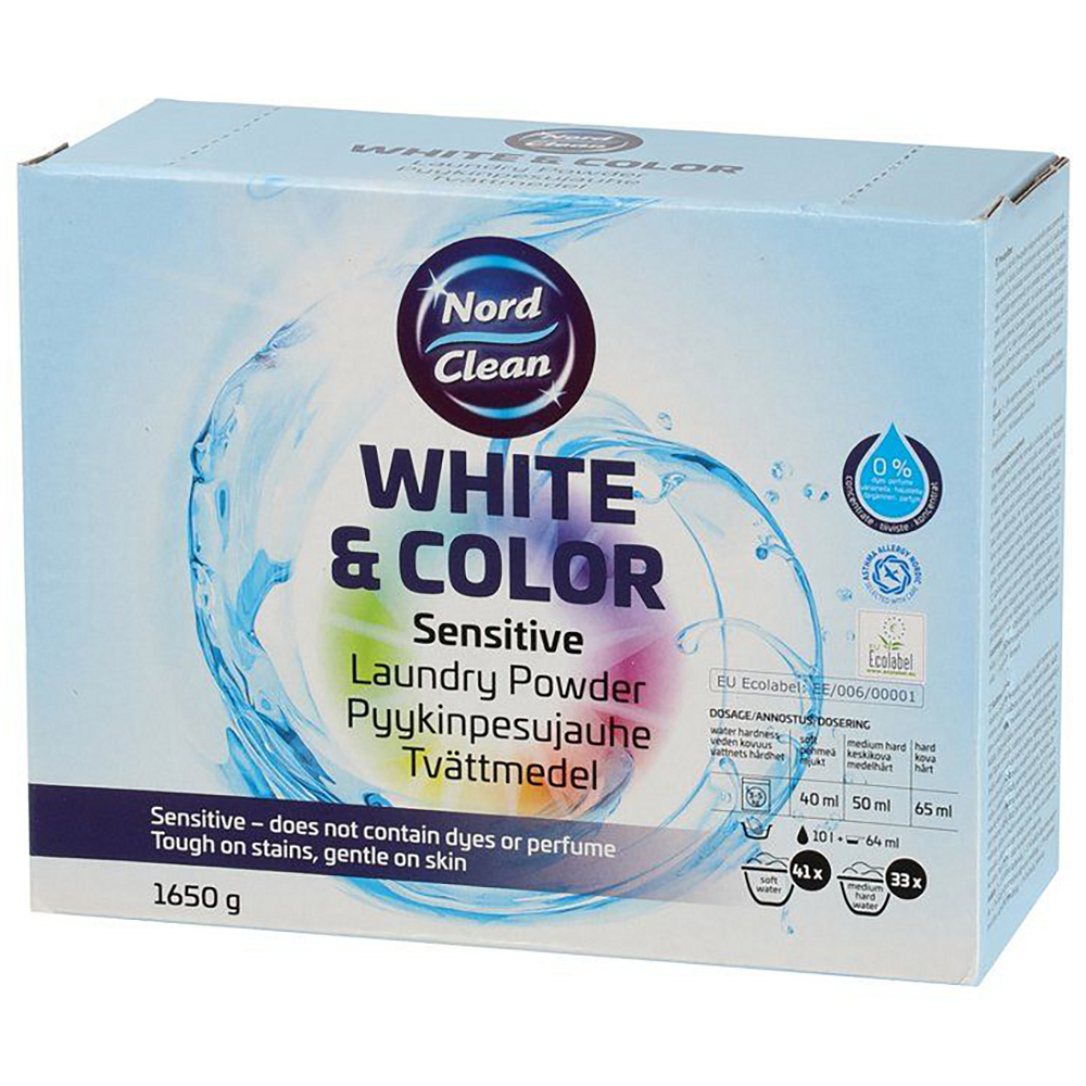 Nord Clean pyykinpesujauhe sekä värillisten että valkoisten tekstiilien pesuun koneessa tai käsin. Pesuaine on tiiviste ja mahdollistaa jopa 41 pesukertaa yhdestä pakkauksesta. Ei sisällä lisättyjä väriaineita tai hajusteita ja sopii siksi kaikille. Ei sisällä zeoliittiä. Ecolabel ja pohjoismaisen allergia- ja astmaliiton merkki.