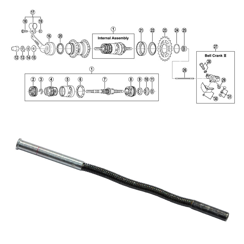 Työntötanko Shimano SG-3C40/41 3-v -takanapaan, jossa 175 mm akseli- Shimano- tuotenumero Y33S98180