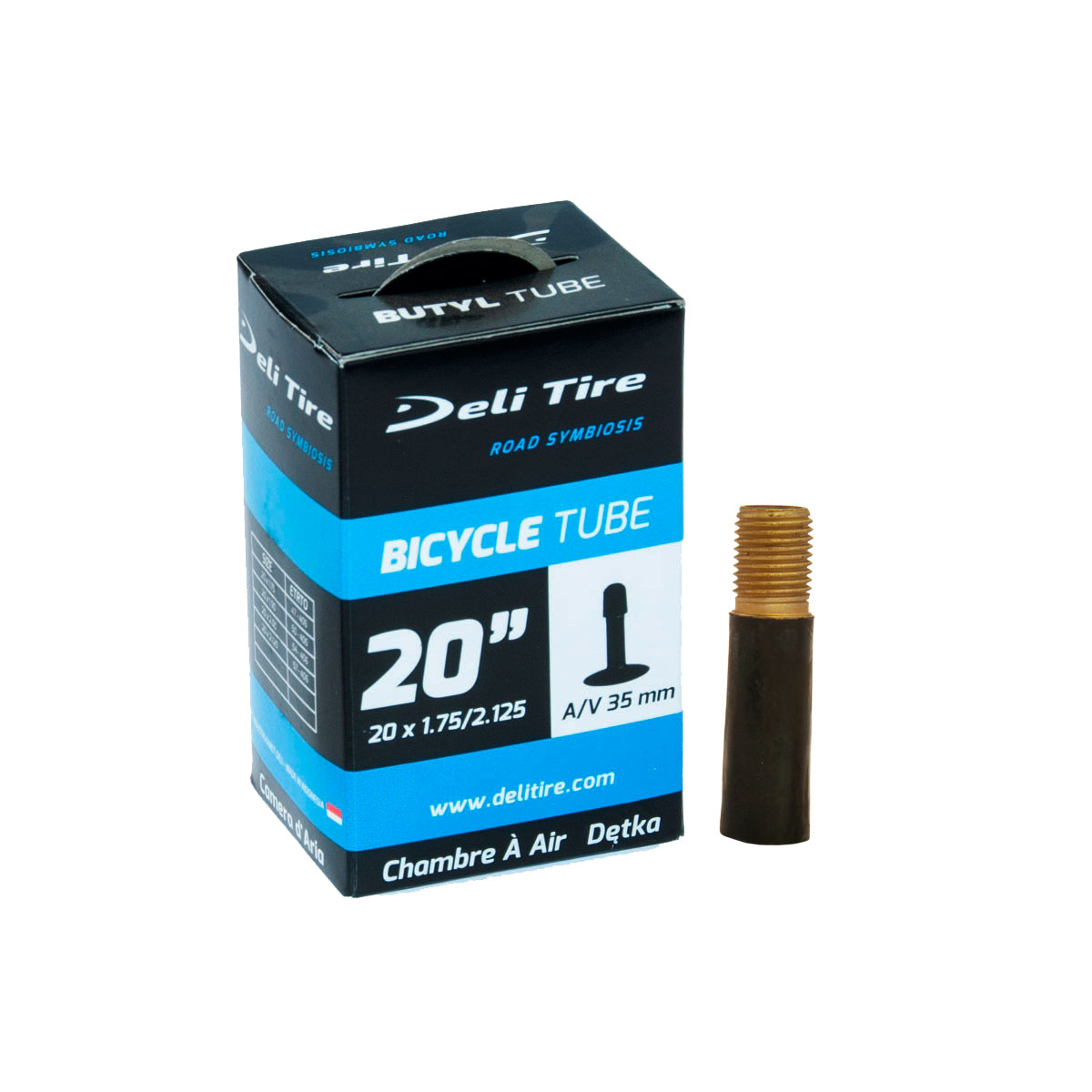 Deli Tire on yli 50 vuotta vanha renkaisiin erikoistunut yritys.Deli polkupyörän sisärenkaat täyttävät ETRTO miitoitukset.Jokainen sisärengas käy yksittäin läpi 24 tuntia kestävän ilmanpainetestauksen. Näin voidaan taata 100%:n täydellinen suorituskyky ja renkaan laatu.- Koko: 47/57-406, 20 x1.75/2.125- Venttiilityyppi: Autonventtiili- Sopii mm. 20″ lasten polkupyörätKorvaa tuotteen 67103.