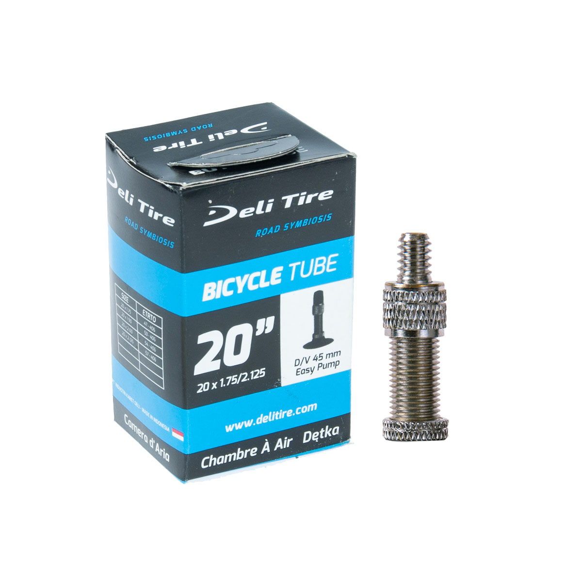 Deli Tire on yli 50 vuotta vanha renkaisiin erikoistunut yritys.Deli polkupyörän sisärenkaat täyttävät ETRTO miitoitukset.Jokainen sisärengas käy yksittäin läpi 24 tuntia kestävän ilmanpainetestauksen. Näin voidaan taata 100%:n täydellinen suorituskyky ja renkaan laatu.- Koko: 47/57-406 , 20 x1.75/2.125- Venttiilityyppi: Pikaventtiili 45 mm.- Sopii mm. 20″ lasten polkupyörätKorvaa tuotteen 67102.