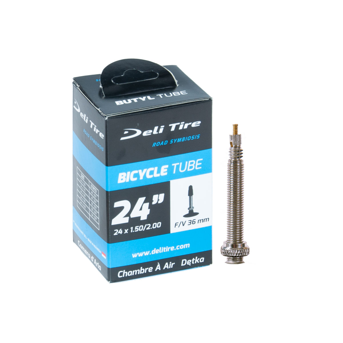 Deli Tire on yli 50 vuotta vanha renkaisiin erikoistunut yritys.Deli polkupyörän sisärenkaat täyttävät ETRTO miitoitukset.Jokainen sisärengas käy yksittäin läpi 24 tuntia kestävän ilmanpainetestauksen. Näin voidaan taata 100%:n täydellinen suorituskyky ja renkaan laatu.- Koko: 40/54-507, 24 x1.50/1.75/2.10- Venttiilityyppi: Prestaventtiili 36 mm.- Sopii mm. 24″ lasten polkupyörätKorvaa tuotteen 67121.