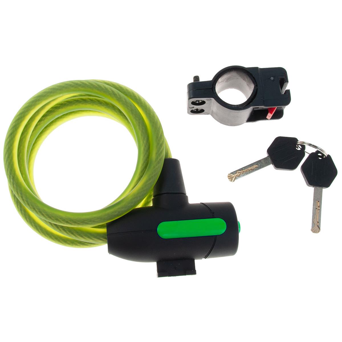 Monikäyttöinen spiraalilukko- Vahvuus: 10mm- Pituus: 150cm- Lukkopesän suoja- Runkokiinnike- Mukana 2 avainta- Väri: Mattalime