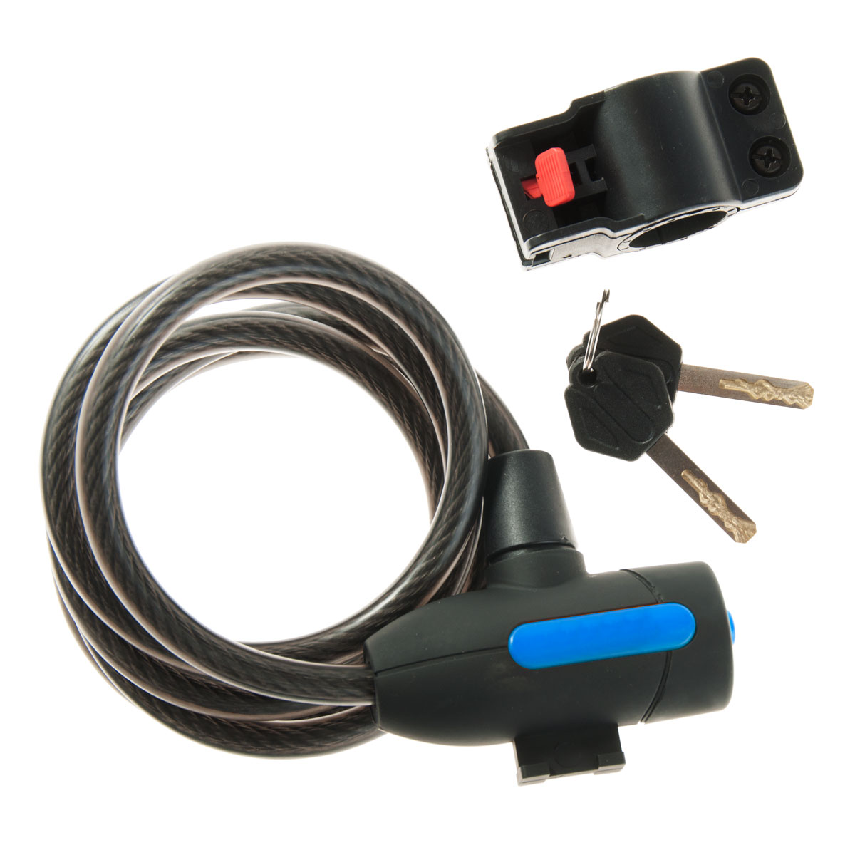 Monikäyttöinen spiraalilukko- Vahvuus: 10mm- Pituus: 150cm- Lukkopesän suoja- Runkokiinnike- Mukana 2 avainta- Väri: Mattamusta