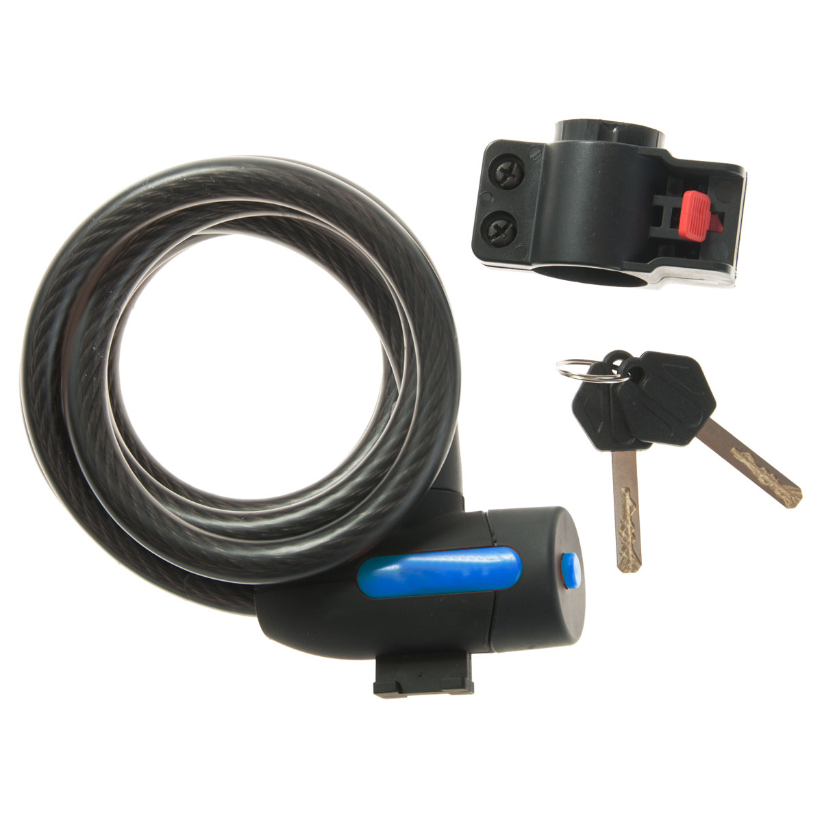 Spiraalilukko- Vahvuus: 12mm- Pituus: 180cm- Lukkopesän suoja- Runkokiinnike- Mukana 2 avainta- Väri: MattamustaKorvaa tuotteen 69533