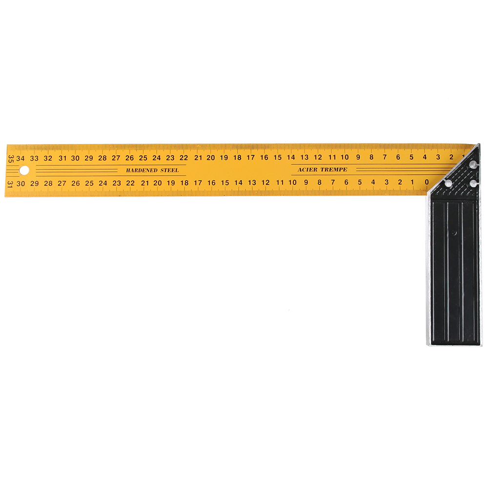 90 asteen kulmamitta, pituus 350mm. Asteikko molemmilla puolilla.