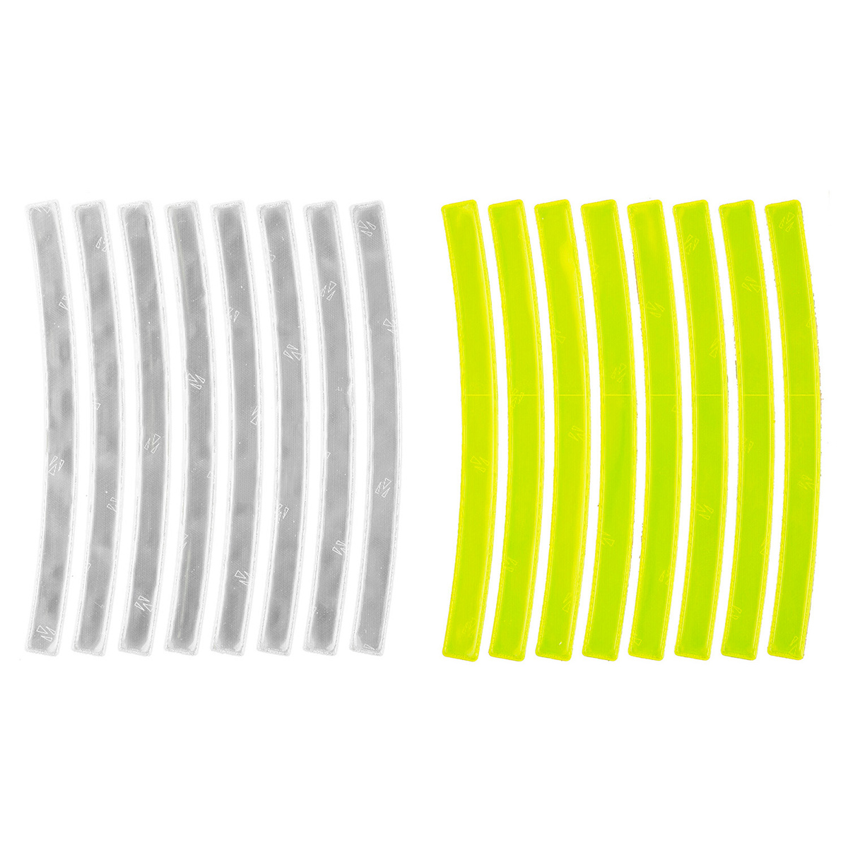 Tarraheijastinsarja 16 kpl. Lisää näkyvyyttä esim polkupyörän runkoon tms.Sisältää 3M laatuisia liimattavia:- Harmaita heijastintarroja 8kpl – Keltaisia heijastintarroja 8kpl. – Heijastintarran mitta 100x7mm.