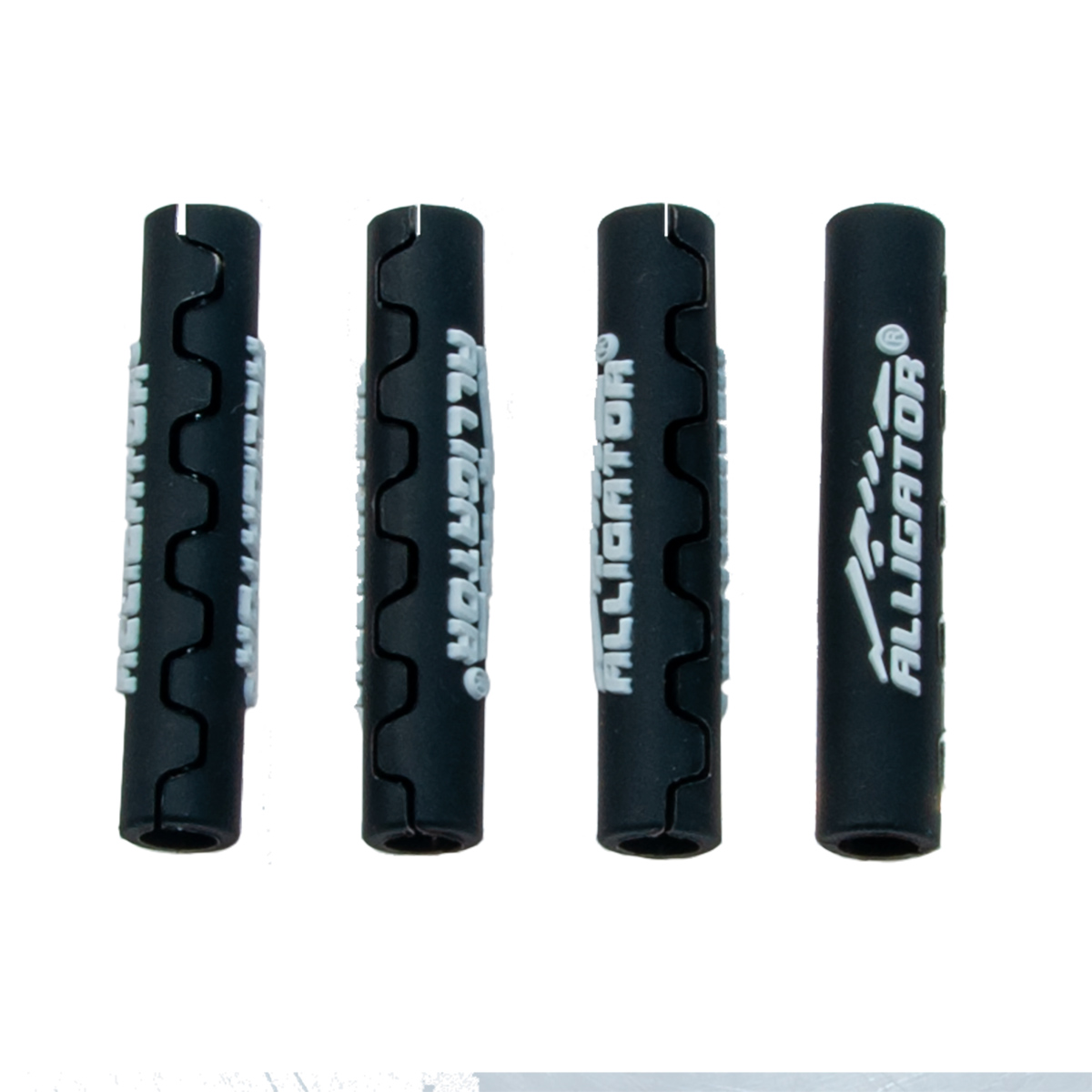 Vaijerinkuoren suoja ALLIGATOR – 4 kpl/pkt- Väri: Musta- Sahalaitakiinnityksellä oleva vaijerinkuoren suoja, estää rungon hankaantumista- Materiaali: Siliconia- Sopii 5 mm. jarruvaijerinkuorelle- Pituus 40mm.